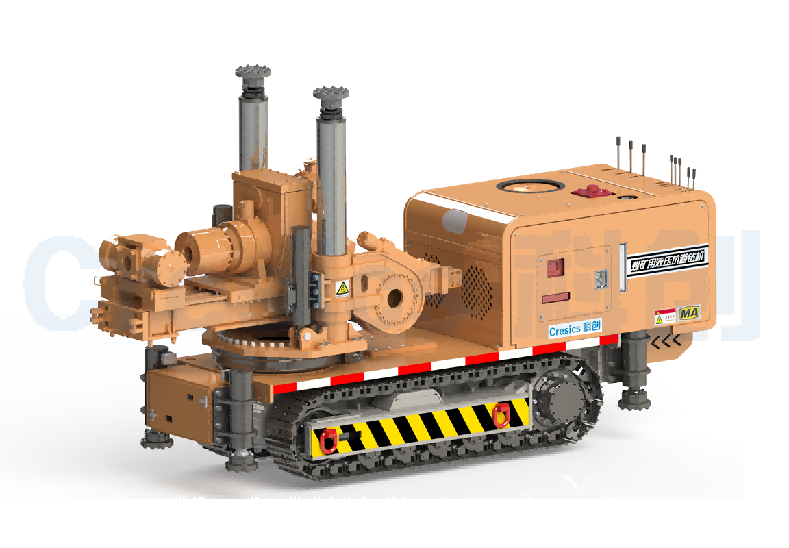 煤礦用履帶式全液壓坑道鉆機是一種履帶自行式鉆機。該鉆機采用新型變幅裝置,能實現(xiàn)多種鉆孔角度和 鉆孔高度的調節(jié),主要適用于煤層的雙層孔或多層孔施工、瓦斯抽采鉆孔施工、探放水孔施工、深層地質鉆探 和其他用途的群式鉆孔。