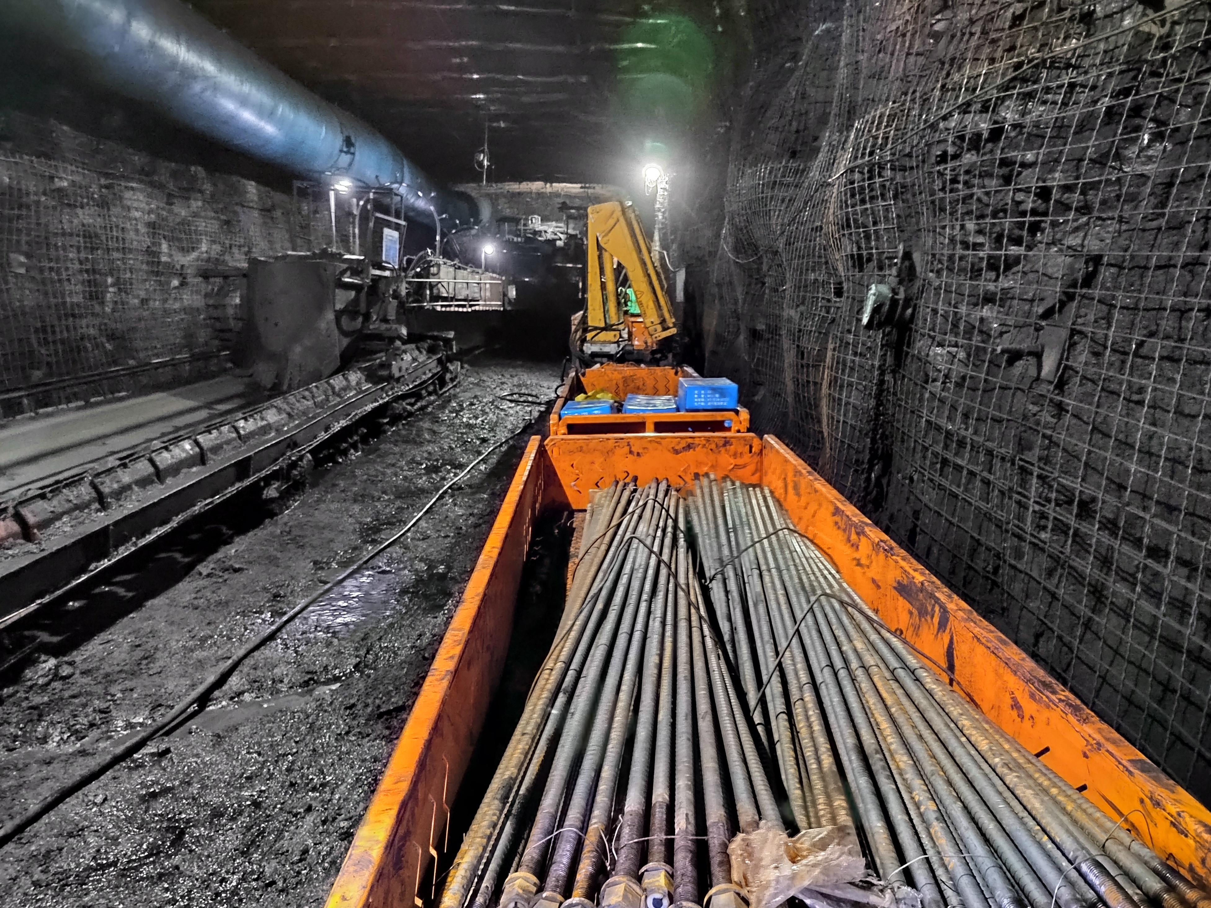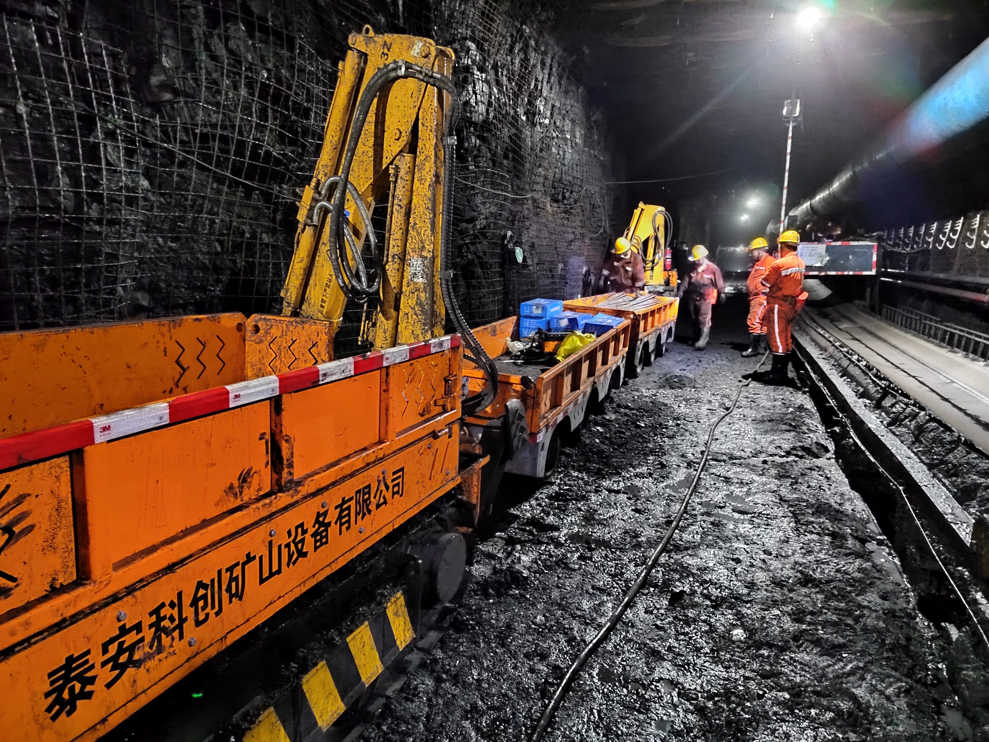 目前掘進(jìn)作業(yè)中,受巷道空間條件所限,膠輪車等運(yùn)輸車輛只能把輔助材料運(yùn)到距離迎頭 50 米處,然后 由人工推、拉、扛等方式把物料卸到迎頭位置,長期以來無法實(shí)現(xiàn)機(jī)械化運(yùn)輸輔材,該工藝工人勞動(dòng)強(qiáng)度大, 工作效率低,安全隱患多。減輕職工勞動(dòng)強(qiáng)度,提高人工效率,改善作業(yè)環(huán)境,探索無人化或少人化輔助運(yùn)輸 技術(shù),成為急需解決的問題。