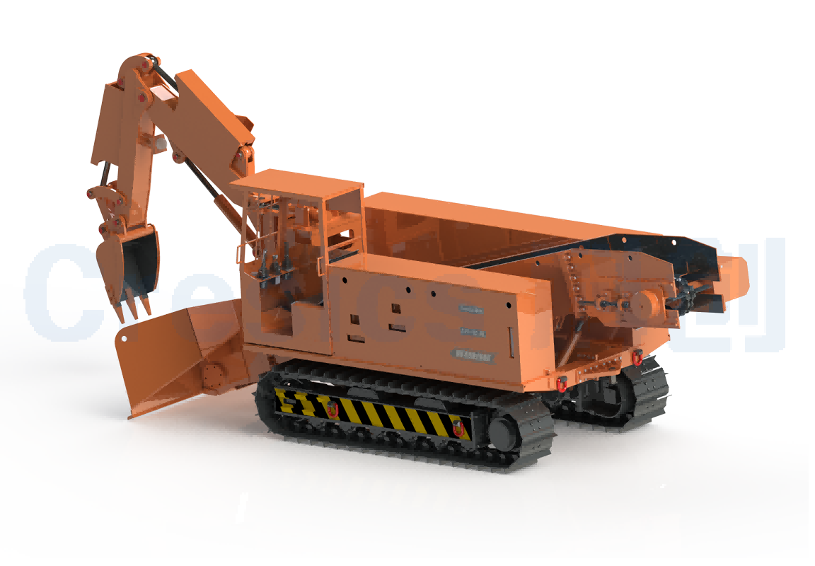 挖掘式裝載機(俗稱:扒渣機)是一種連續(xù)高效率出礦設(shè)備,是礦山耙斗裝巖機和立爪裝載機的理想替代 產(chǎn)品,可滿足巷道小斷面施工裝渣的需要。該產(chǎn)品被廣泛應(yīng)用于礦山斜井和立井平巷的各種斷面的掘進裝載作 業(yè),以及磷礦、鐵礦、錳礦等各種礦石的采掘裝車作業(yè),同時,該產(chǎn)品也廣泛應(yīng)用于修建鐵路隧道、公路隧道、 引水洞工程等各種隧道掘進工程中。