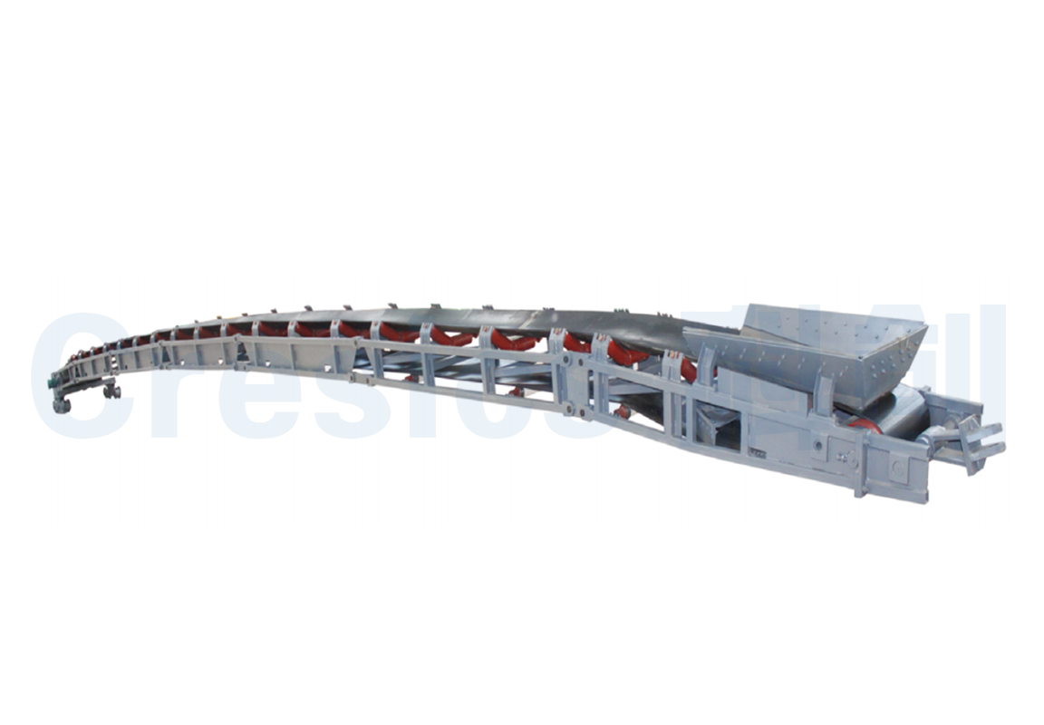 二運皮帶機(jī)與挖掘式裝載機(jī)鉸接連接,機(jī)身下部配有滑動小車,可隨挖掘式裝載機(jī)前后移動,可后接皮帶機(jī)、 礦車組等多種設(shè)備。