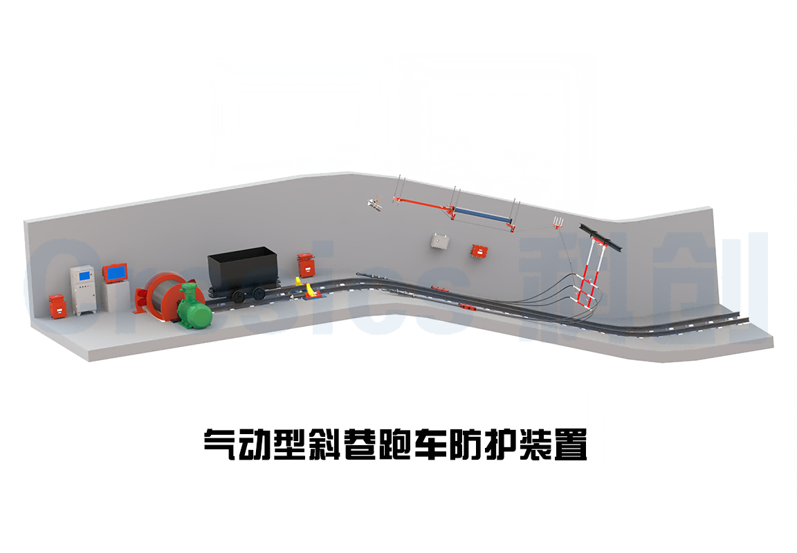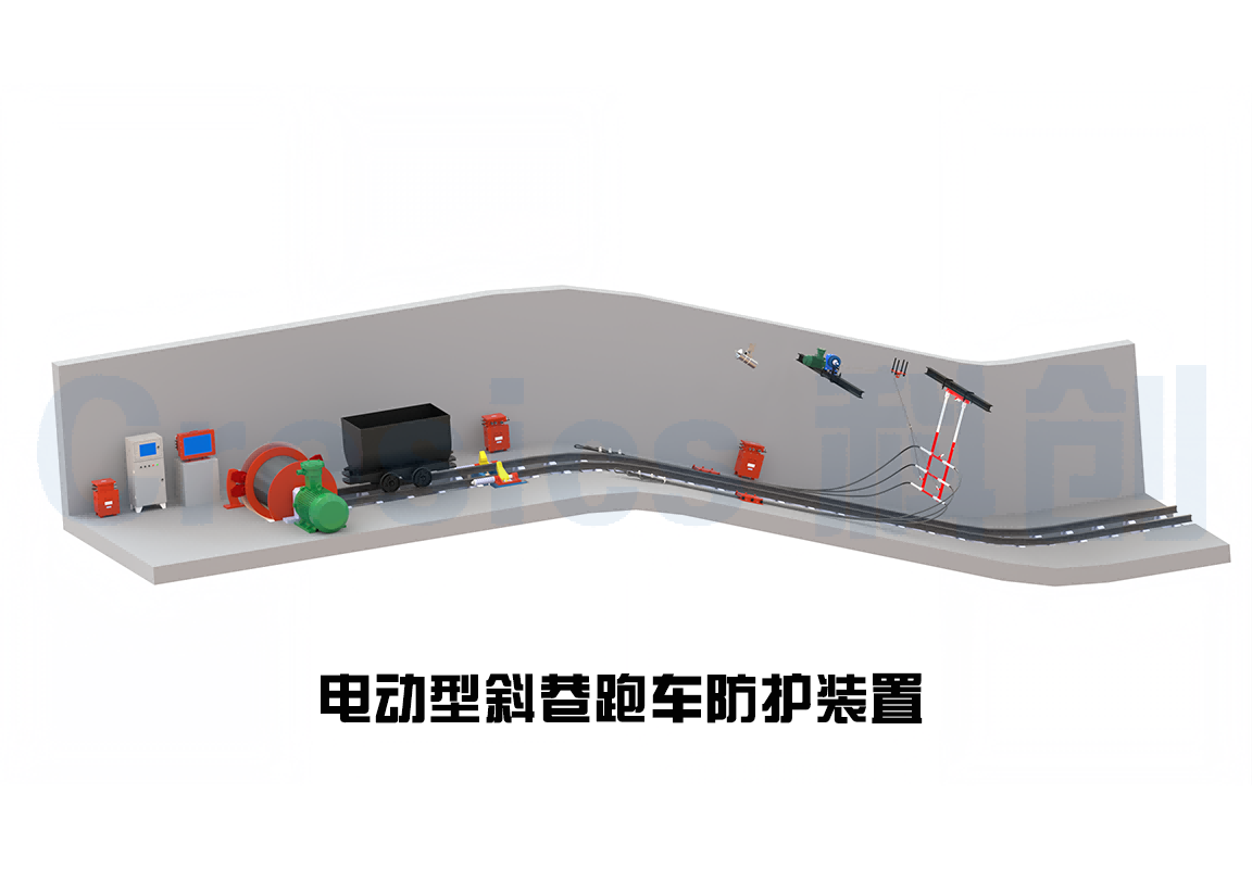 根據(jù)現(xiàn)行《煤礦安全規(guī)程》(2025 版)第 422 條的有關規(guī)定,為避免礦山斜井串車運輸中,因把鉤工摘掛 鉤失誤或斷繩、脫鉤等造成礦車跑車現(xiàn)象,斜巷內(nèi)應安設跑車防護設施,其中,斜巷的上車場變坡點處應安設阻 車器,斜巷內(nèi)應安設“常閉式”跑車防護裝置,上述設備可有效的避免各類斜巷跑車事故的發(fā)生,確保了斜巷運 輸安全。斜巷跑車防護裝置是煤礦斜井提升運輸?shù)闹匾踩O備,安裝在煤礦井下斜巷內(nèi),采用位置傳感器獲取 與絞車同步運行的控制信號,使擋車網(wǎng)處于“常閉式”防護狀態(tài),如因斷繩、脫鉤等原因而發(fā)生跑車事故,可采 用柔性緩沖器來進行有效攔截。